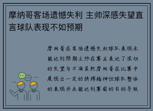 摩纳哥在客场遗憾失利,球队表现未能达到预...